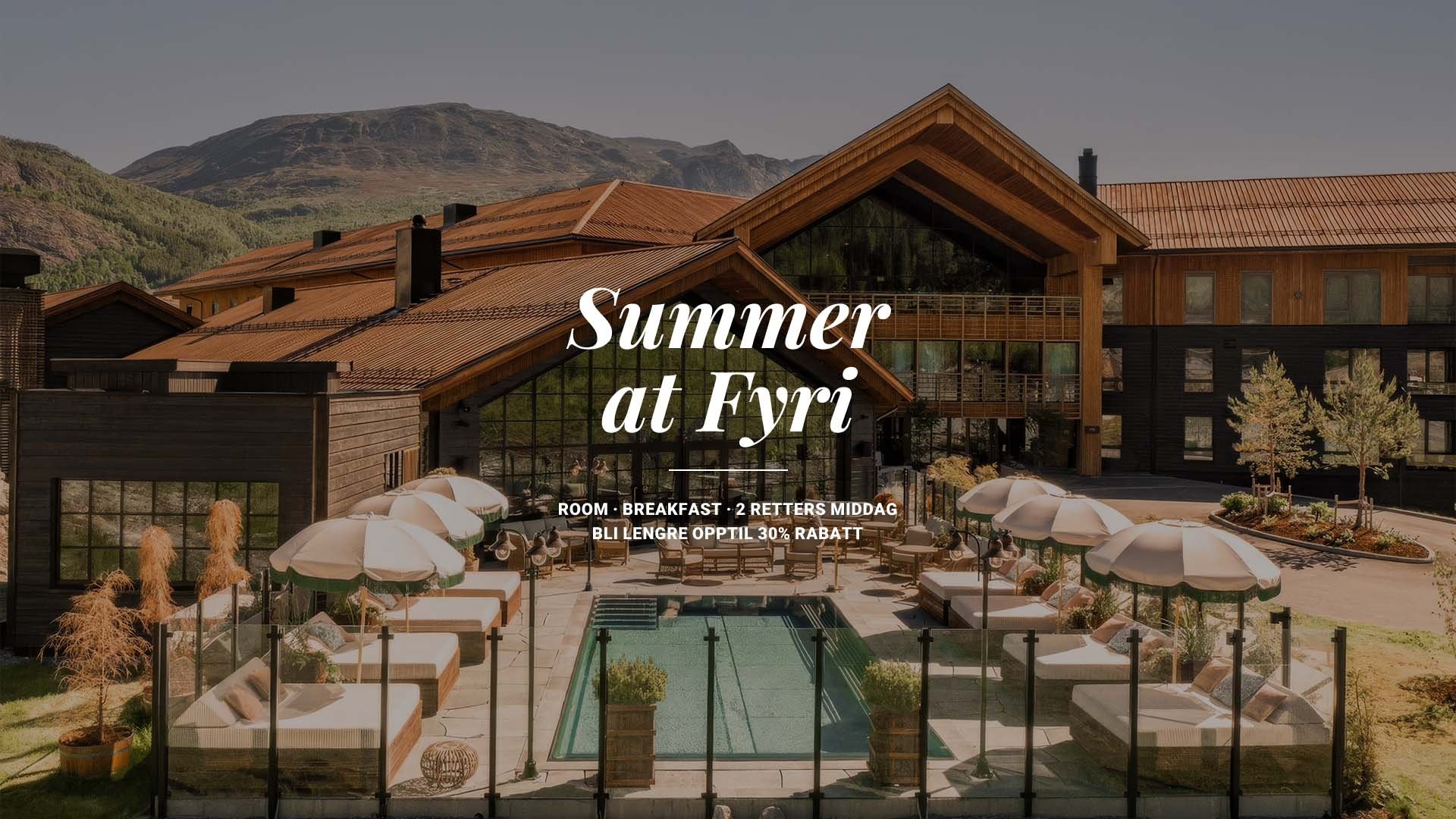Sommeropplevelse på Fyri Resort – 30% rabatt (13. mai–31. august 2026) Opplev en uforglemmelig sommer i hjertet av Hemsedal, der spektakulær fjellnatur møter avslappet luksus. Fra 13. mai til 31. august 2026 kan du nyte en eksklusiv sommerfordel med 30% rabatt på utvalgte opphold.